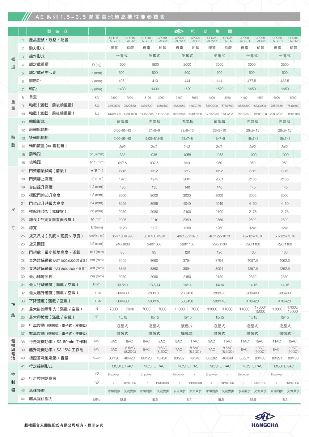 電動AE系列四輪1.5-3.5噸(鋰電)