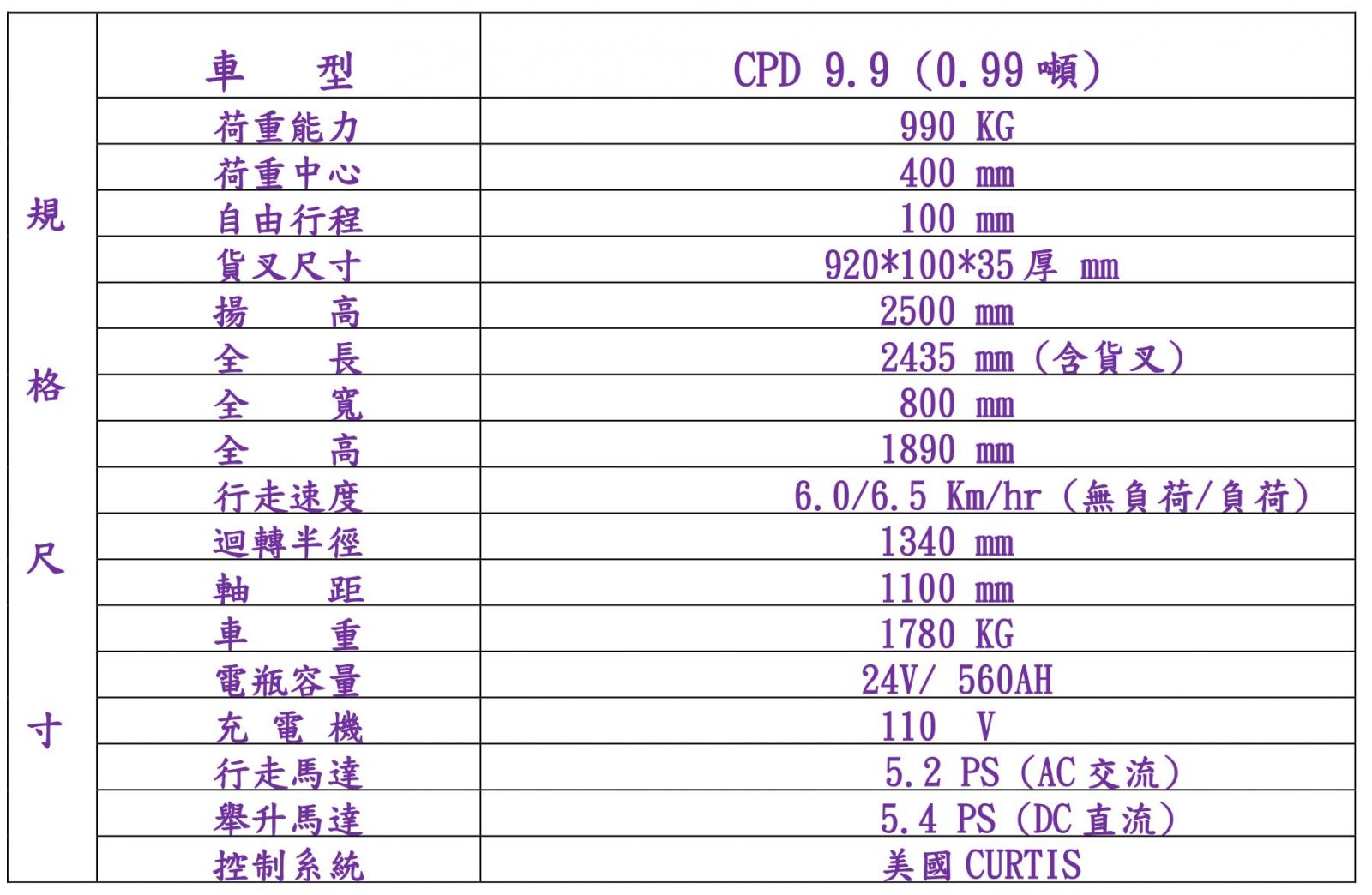 特殊規格堆高機