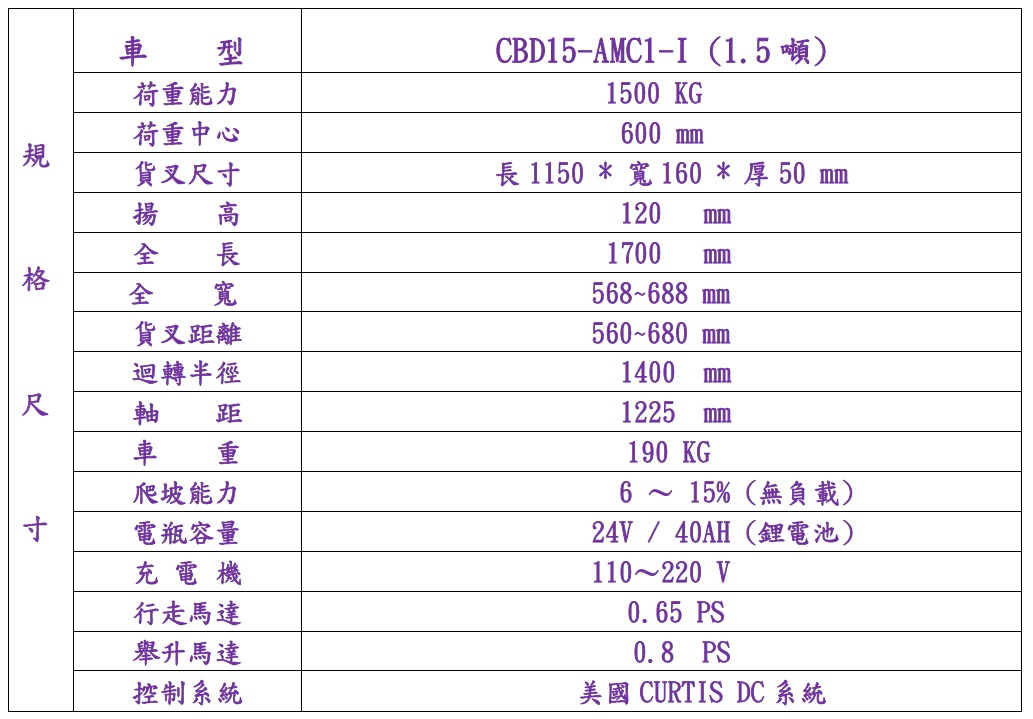 倉儲用電動堆高/拖板車1.5-3.0噸(鋰電/鉛酸兩用)